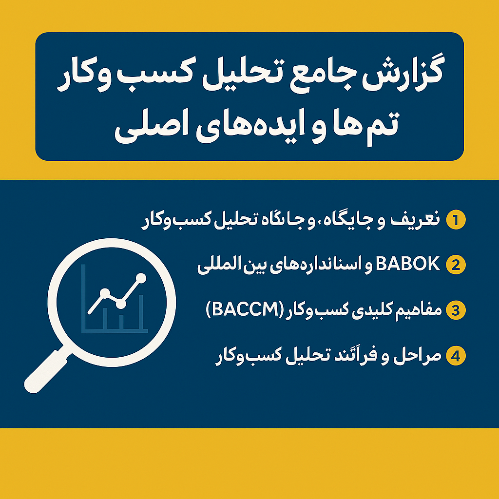 این گزارش با بررسی دقیق منابع سرفصلهای دورههای مختلف تحلیل کسبوکار، راهنماهای BABOK و مطالب مرتبط با علم داده تدوین شده است. هدف اصلی، ارائه یک نمای کلی از مهمترین تمها، ایدهها و حقایق کلیدی در حوزه تحلیل کسبوکار است.